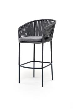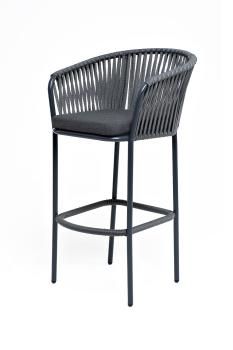 Барный стул “Бордо” представлен в стальном каркасе, оплетен вручную эластичными синтетическими лентами из высокопрочных полиэфирных волокон.