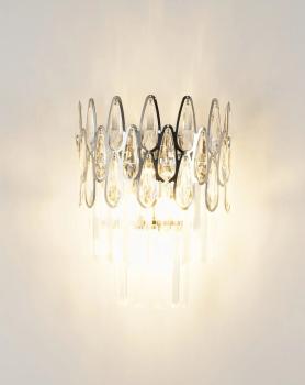Настенный светильник из серии May в стиле модерн. Металлический каркас цвета хром гармонично сочетается со вставками и подвесками из хрусталя, которые создают изумительную игру света при освещении. В качестве источника света подойдут лампы с цоколем Е14. Утонченный дизайн бра May станет главным украшением интерьера.