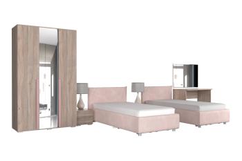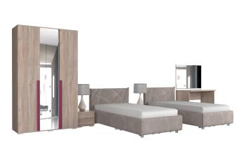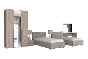- Практичность: В комплекте есть все необходимое – от вместительного шкафа до удобных тумб и кроватей