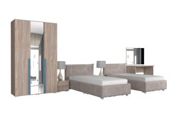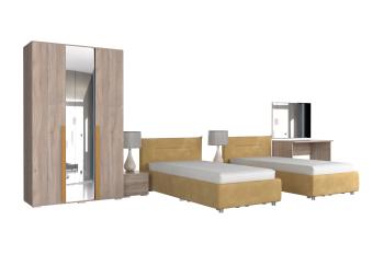 - Функциональность: включает зеркало, тумбы, туалетный столик и вместительный шкаф