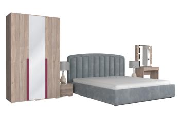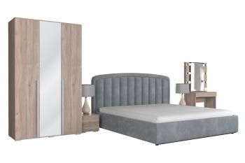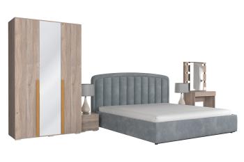 - Особенности: включает зеркало, туалетный столик, вместительный шкаф и удобные тумбы