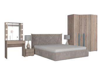- Особенности: включает зеркало, тумбы, туалетный столик, кровать и шкаф