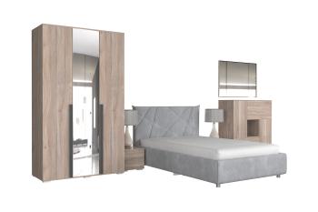 - Особенности: включает зеркало, вместительный шкаф, удобные тумбы и кровать