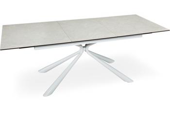 При разработке стола HUGO перед дизайнерами стояла задача переосмыслить стандартное крестообразное основание стола, сделав его визуально более лёгким. Идеальным решением стало использование сложного конусообразного дизайна ножек, в котором массивность опор, прилегающих к полу, уменьшается по мере движения направления взгляда наверх, к столешнице. Глянцевая керамическая столешница из керамики цвета «серый мрамор» придаёт HUGO особую харизму. Стол оснащен автоматическим механизмом раскладки, который позволит увеличить стол до 220 см и принять гостей. Стол HUGO станет главным «героем» столовой в современном стиле.