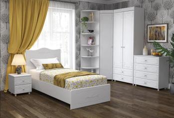 Кровать оснащена настилом из ЛДСП. Матрас для кровати докупается отдельно. Состав набора: