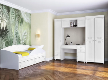 Детская Монако-4 стильный и функциональный набор детской мебели. Комплект обеспечивает зону отдыха и учебы. Фасады из высококачественной МДФ с объемным узором. Ящики выдвижные на шариковых направляющих полного выдвижения. Дверцы с доводчиками. Кровать оснащена настилом из ЛДСП. Кровать оборудована основанием для ортопедического матраса. Матрас для кровати докупается отдельно.