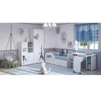 Je t“aime! Маленькая парижанка, petite mademoiselle, девочка, любящая все весеннее, сияющее и утонченное – вот для кого создана коллекция мебели для детской “Трио. Бонжур”.Изящные линии Эйфелевой башни в сочетании с силуэтами уличных фонарей Монмартра нанесены на модули детской в стиле Скетч.Романтическое настроение коллекции придают россыпь сердечек и воздушных шариков нежного фиалкового цвета!