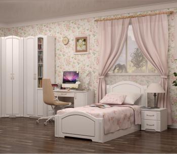 Модульная серия Виктория, выпускается такжеспальня, прихожая и гостинаяв едином стиле. Выполнена в стиле «Классика». Особенность серии – фасады МДФ с фрезеровкой, петли с доводчиком на всех фасадах, шариковые направляющие, возможность исполнения шкафов для одежды с зеркалами и без. В шкафу для одежды 4-х дверном установлена система складных фасадов, ручки металлические с белой вставкой, покрытие золото.