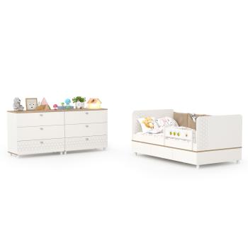- Встроенные комоды: 2 комода с тремя ящиками каждый обеспечивают удобное хранение детских вещей