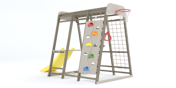 Основа игрового комплекса прочный деревянный каркас, сделанный из сосны (сечение 30 х 50 мм). Это экологичный, безопасный материал. Цвет и тип покрытия зависит от пожеланий клиента.
