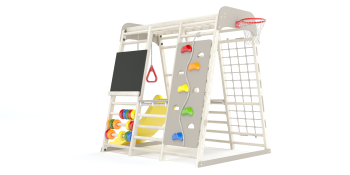 Основа игрового комплекса прочный деревянный каркас, сделанный из сосны (сечение 30 х 50 мм). Это экологичный, безопасный материал. Цвет и тип покрытия зависит от пожеланий клиента.