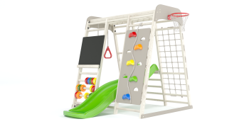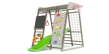 Основа игрового комплекса прочный деревянный каркас, сделанный из сосны (сечение 30 х 50 мм). Это экологичный, безопасный материал. Цвет и тип покрытия зависит от пожеланий клиента.