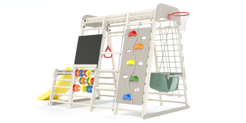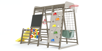 Основа игрового комплекса прочный деревянный каркас, сделанный из сосны (сечение 30 х 50 мм). Это экологичный, безопасный материал. Цвет и тип покрытия зависит от пожеланий клиента.