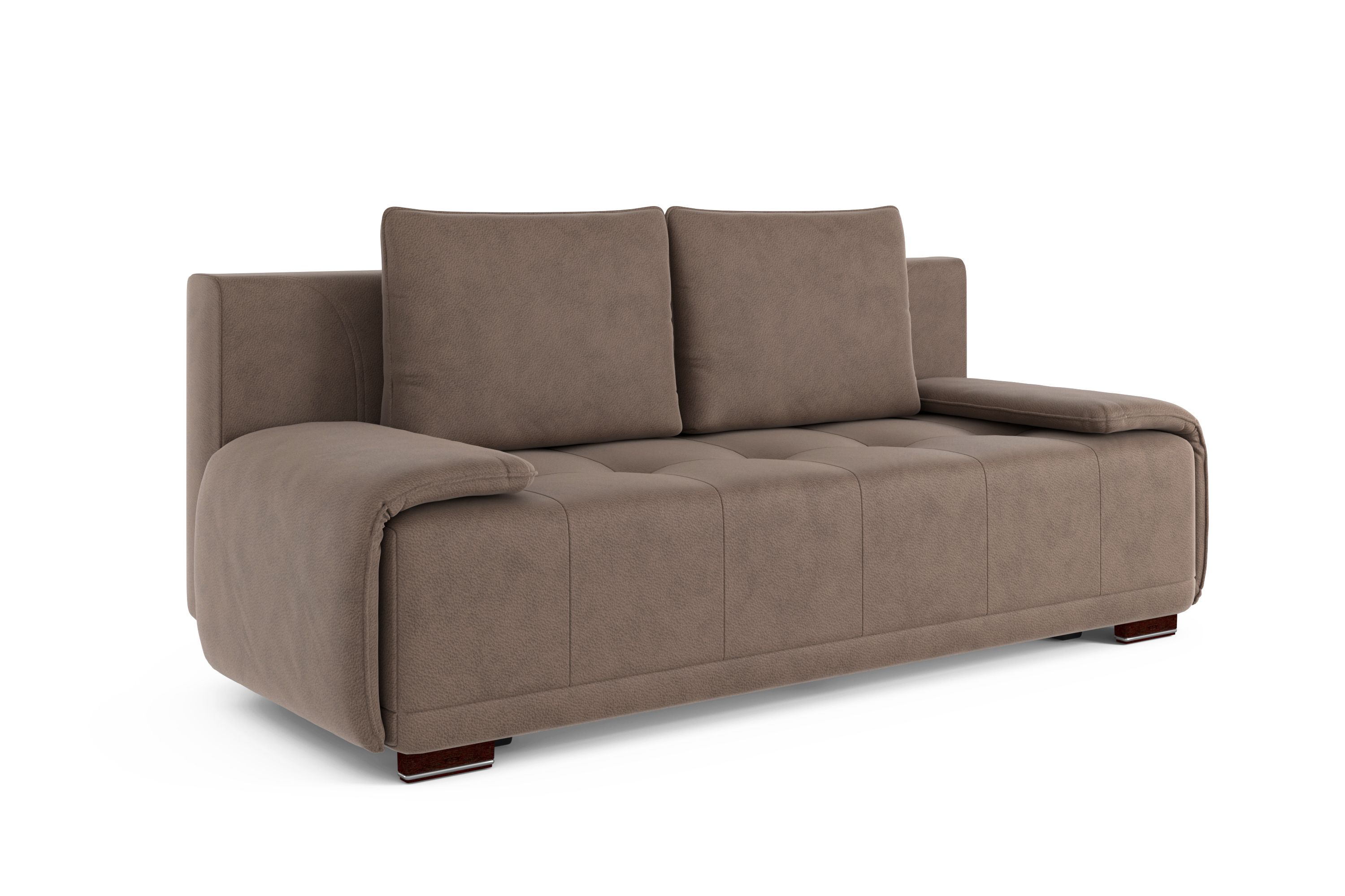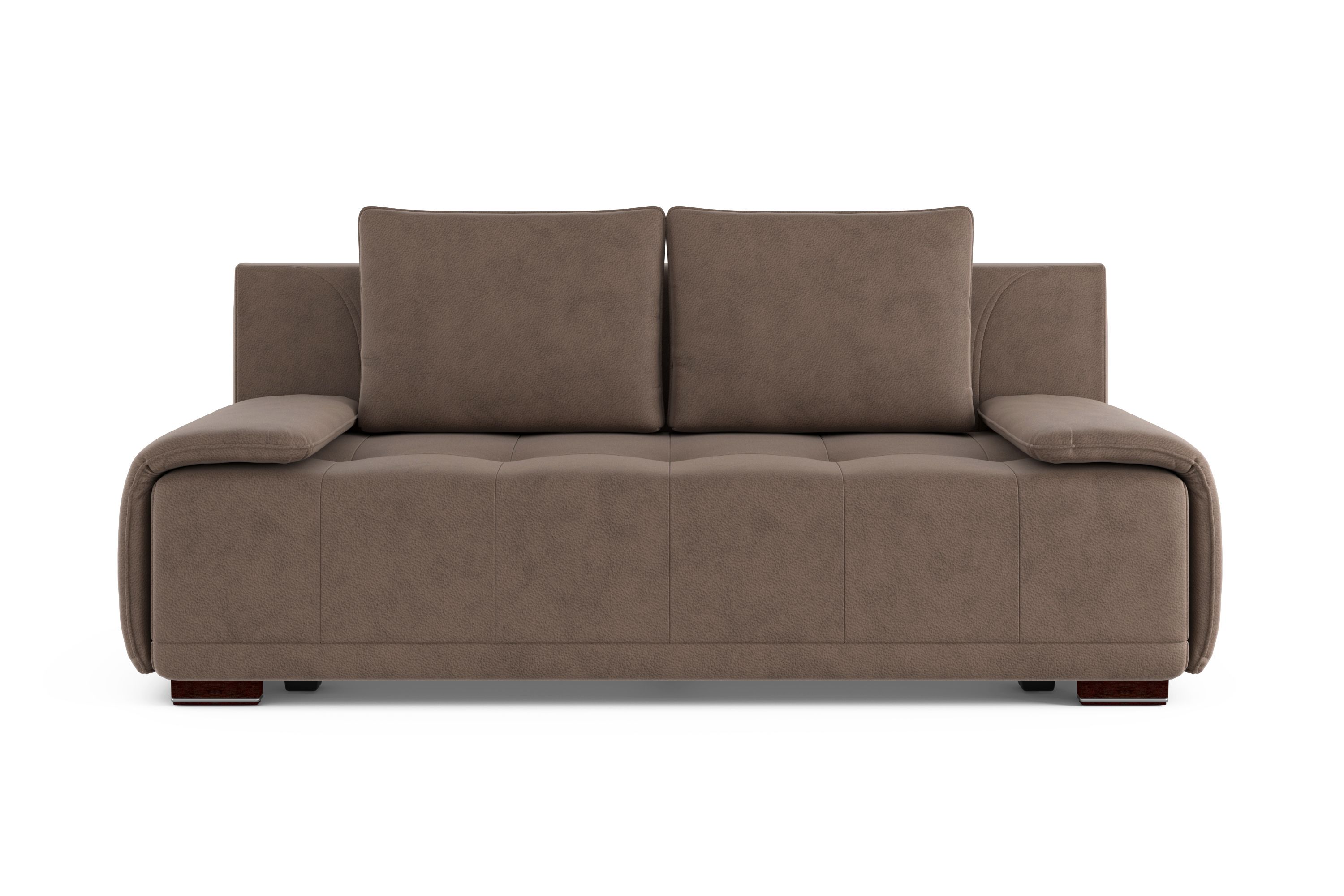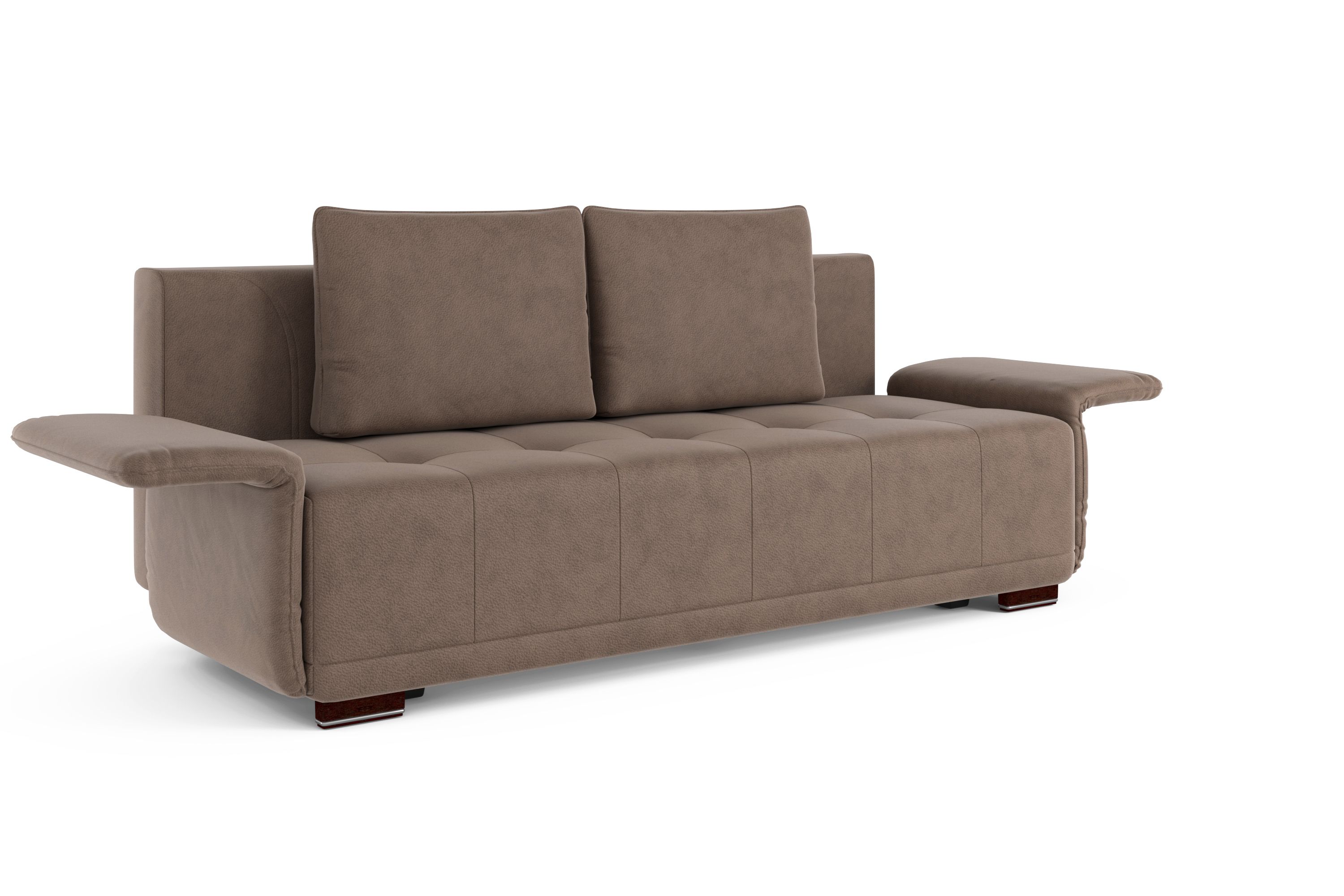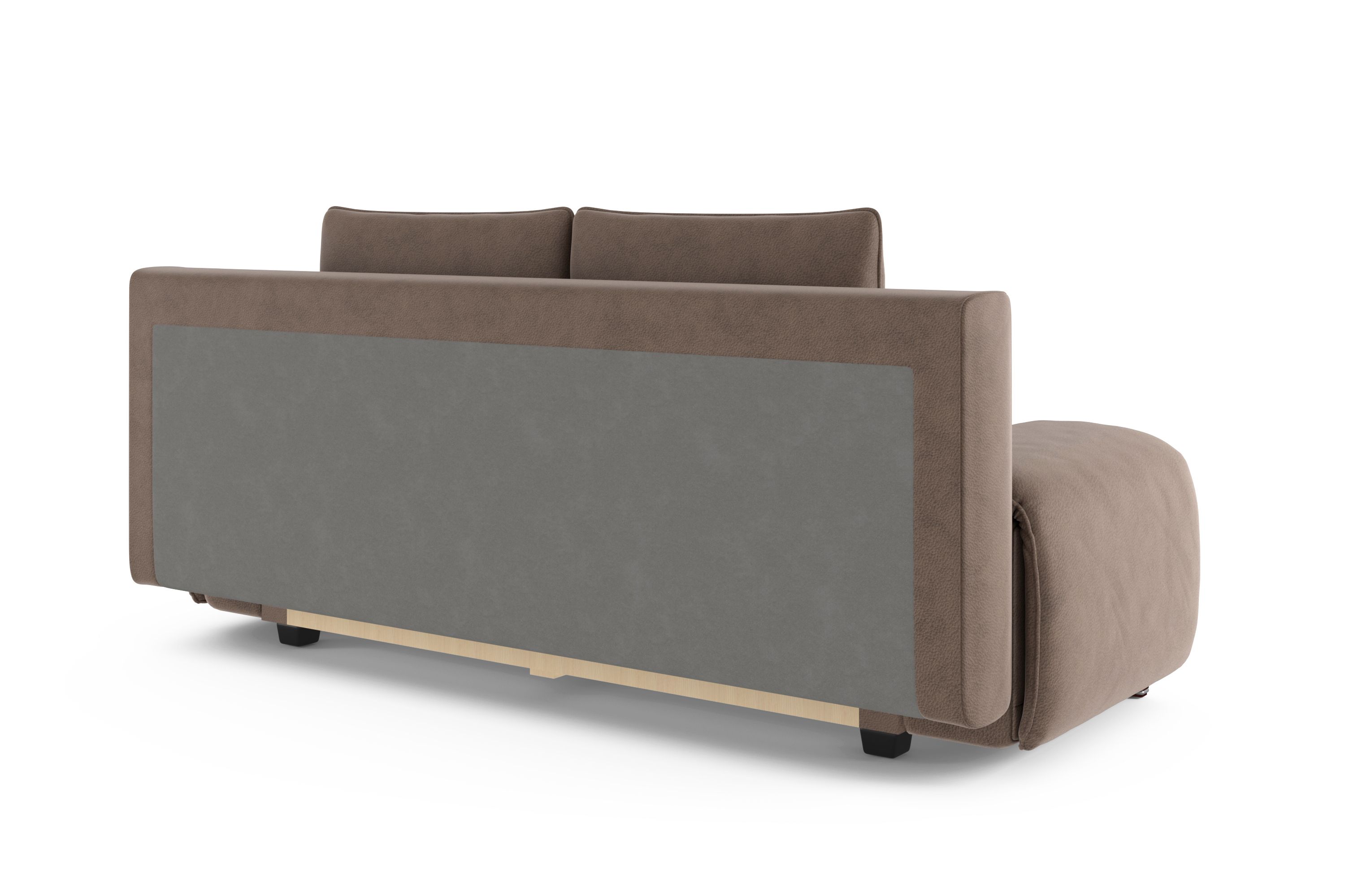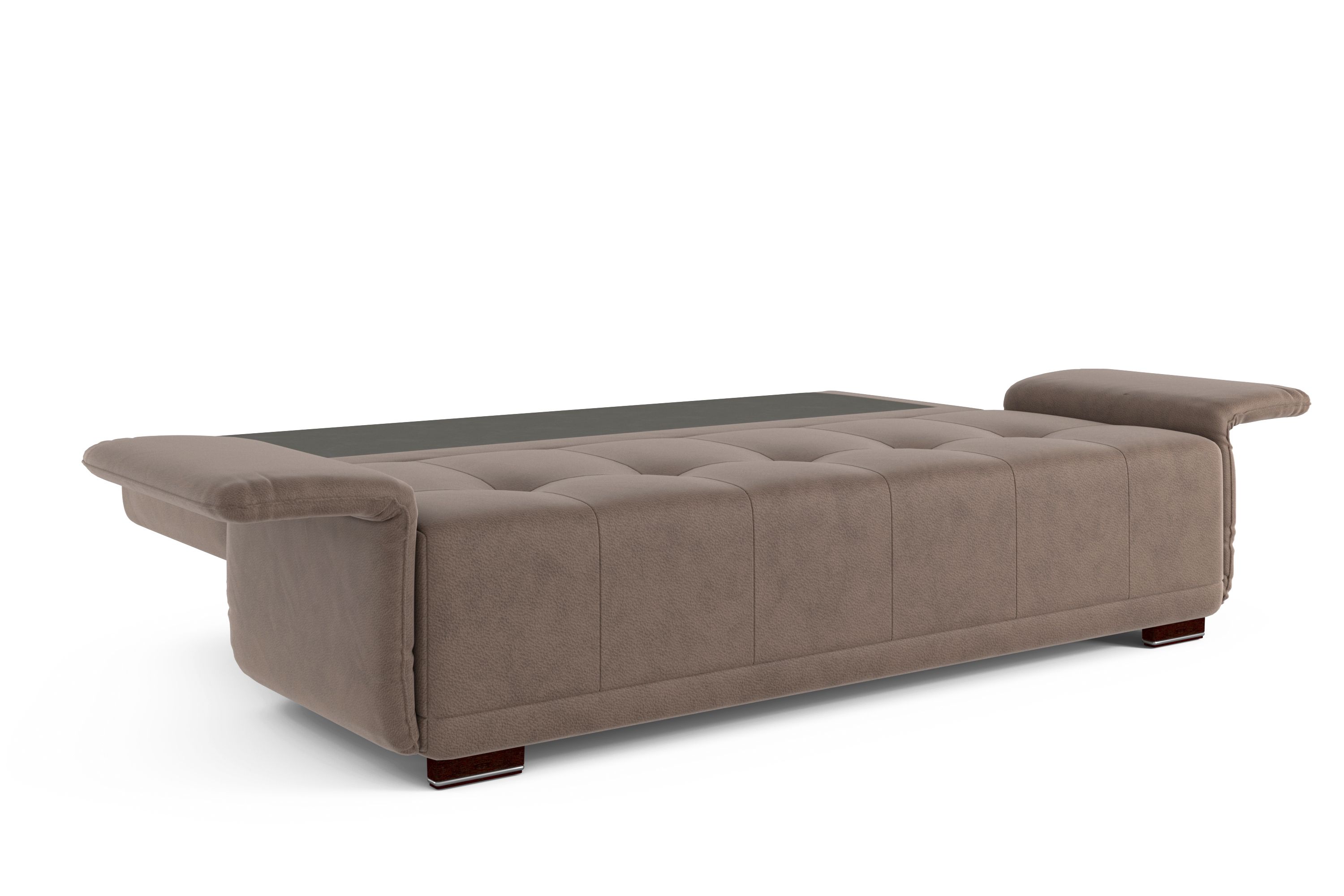 Оригинальный подлокотник с механизмом трансформации уменьшают габариты дивана в сложенном ввиде и организуют рабочцю поверхность в сложенном ввиде.