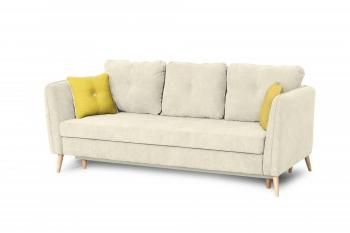 Диван-кровать АНТАЛИЯ 2 выполненный в скандинавском стиле принесет уют и спокойствие в вашу любимую гостиную. Высокие ножки из массива березы придают дивану визуальную лёгкость, декоративные утяжки с пуговицами на подушках украшают изделие, а механизм трансформации “Тик-так” превращает диван в полноценное спальное место размером 196х151 см. Имеется вместительный бельевой ящик.