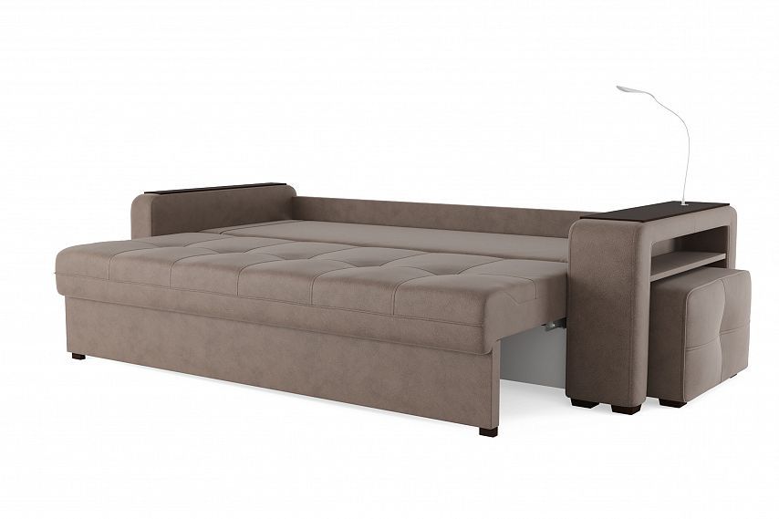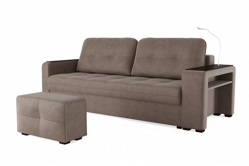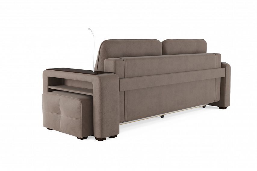 Диван «SMART 4» — это не просто мягкая мебель, а один из ключевых элементов интерьера с обширным функционалом, где эстетика тесно соседствует с комфортом и эргономичностью. Одна боковина оснащена карманом для хранения мелочей и гаджетов, другая боковина совмещает одновременно: рабочую поверхность, за счет широкой накладки, двойной usb – порт и портативную лампу точечного света, которая входит в комплект. Добавить контрастных деталей в интерьер поможет пуф, интегрированный в подлокотник. Этот вариант для современных людей, которые ценят комфорт и удобство отдыха. Мягкое сиденье с легкостью трансформируется в просторное спальное место, на котором смогут утроиться ваши гости. Стильный и уютный, он станет отличным решением, если вы ищите не только красоту, но и комфорт.