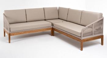 Диван имеет алюминиевый каркас, окрашенный порошковой краской в темно-серый (RAL7024) цвет. Боковины каркаса вручную оплетены роупом – эластичными синтетическими лентами, изготовленными из высокопрочных полиэфирных волокон. Цвет оплетки – темно-серый.