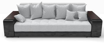 В комплекцию модели входят: ящик для постельных принадлежностей, бар – полки, накладка на подлокотники и несколько