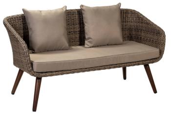 Округлые формы, алюминиевые конические ножки с имитацией древесины и элегантное, очень комфортное посадочное место, скомплектованное дополнительными подушками для спины, создадут уютную и естественную атмосферу в вашем патио.