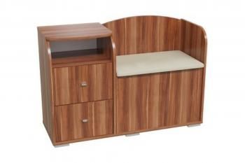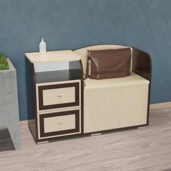 Диванчик в прихожую с тумбочкой и двумя выдвижными ящиками. Внутри, под сидением расположен ящик для хранения. Хорошо сочетается с такими прихожим, как: “Бостон” в двух цветах, “Домино”, “Трио” , “Диана”, “Кватро”, “Гранд”, “Кристина”, “Рондо”.