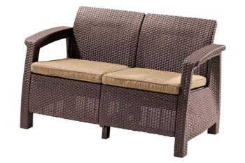 Диван из искусственного ротанга KETER CORFU LOVE SEAT MAX – это элегантный и комфортный садовый трёхместный диван, предлагаемый в комплекте с подушками. Широкая гамма цветов и оригинальная, подобная ротанговой, фактура поверхности придется по вкусу даже самым требовательным пользователям. Изготовлен из стойкой к воздействию УФ-излучения и погодных условий высококачественной пластмассы. Очень просто собирается и легко чистится.