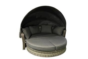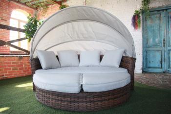 Круглый шезлонг легко трансформируется в компактный полукруглый диван, а солнцезащитный козырек позволит вам наслаждаться свежим воздухом даже в самый знойный летний день.