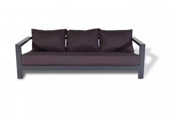 Стильный трехместный диван «Гранада» для обустройства зоны отдыха на балконе, в кафе или летней веранде. Каркас изготовлен из высокопрочного алюминия темно-серого цвета.
