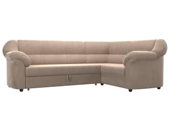 Карнелла – недорогой угловой диван, красивый снаружи и прочный внутри. Он устойчиво стоит на деревянных ножках, украшая своим присутствием гостиную. Угол можно расположит как справа, так и слева. Изделие легко раскладывается, образуя комфортное спальное место.