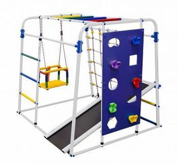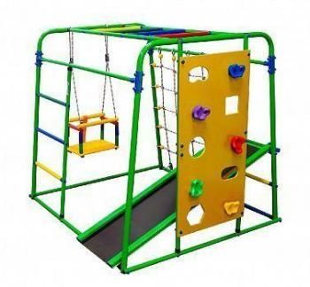 Комплектация: скалодром с зацепами, сетка-лаз, ламинированная горка, качель, рукоход.