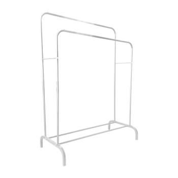 Двойная напольная вешалка подойдет как для хранения одежды, так и для удобного хранения сумок, рюкзаков и других аксессуаров. Нижняя полка вешалки, расположенная у пола, позволит удобно разместить шесть пар обуви, либо станет удачным местом для хранения органайзеров или коробок. Штанга вешалки вмещает большое количество одежды, а удобные стопперы не позволят вешалкам падать на пол, тем самым сохраняя одежду чистой. Напольная вешалка очень легко монтируется и собирается без лишних инструментов.