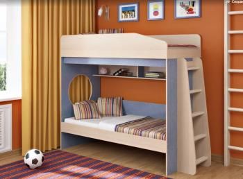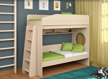 Над нижним спальным местом расположена открытая двухсекционная полка, которую удобно использовать для хранения книг и сувениров.