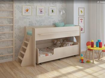 Двухъярусная Легенда 23 комплектация 3 для детей от 3 до 10 лет представляет собой компактное решение для небольших детских. Выполнена из высококачественного ЛДСП. Эта кровать – замечательный выбор для детской комнаты.