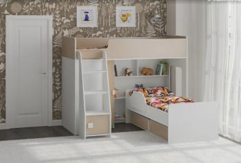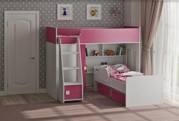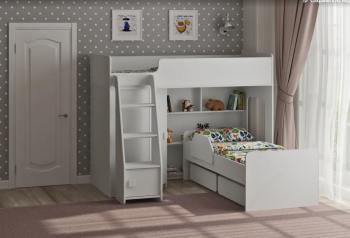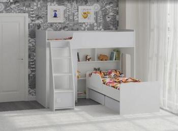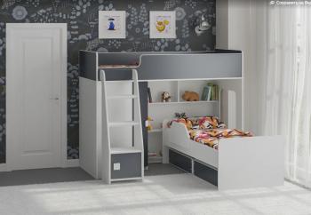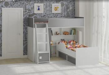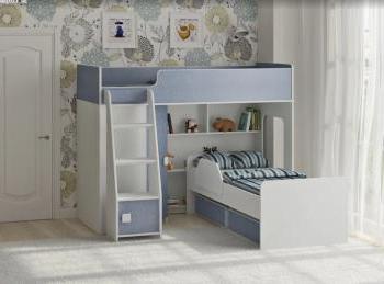 Под верхним спальным местом располагается стеллаж, отлично подходящий для хранения игрушек