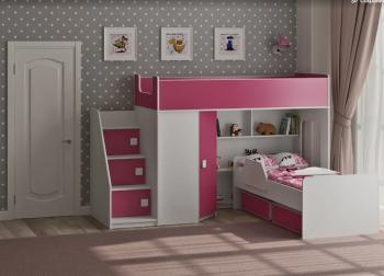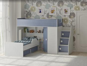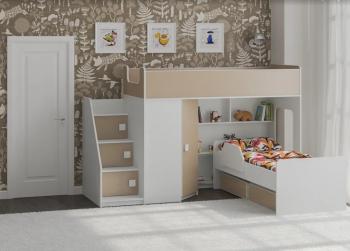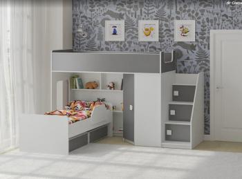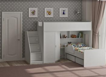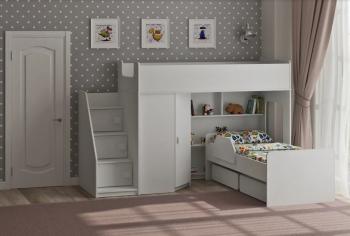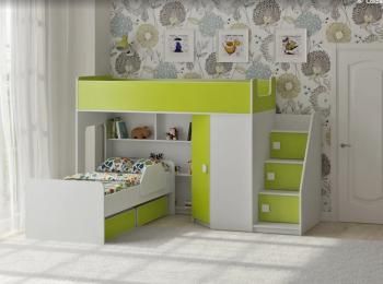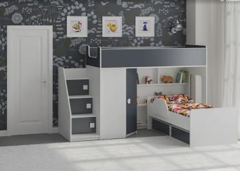 Под верхним спальным местом располагается стеллаж, отлично подходящий для хранения игрушек
