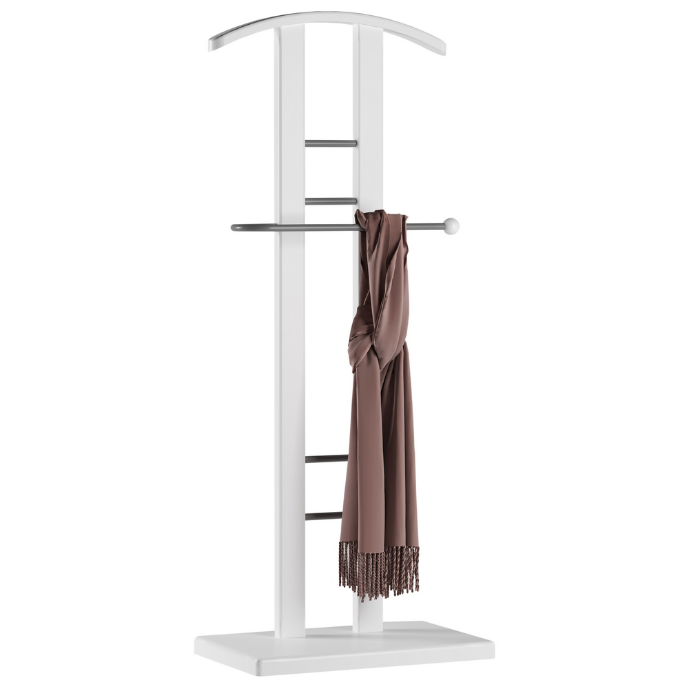 Функциональная организация. Главное преимущество вешалки – ее продуманная функциональность. Основная перекладина с широкими плечиками идеально подходит для мужских костюмов, пиджаков и рубашек. Множество дополнительных перекладин разного уровня предназначены для аккуратного размещения галстуков, платков, шарфов, ремней или даже брюк, сложенных через перекладину. Это решение для комплексного хранения делового гардероба в одном месте.