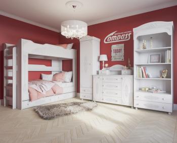 Кровать двухъярусная Ассоль АС-25 белое дерево / 1 шт – (ш/г/в) в мм: 2158х942х1787. Основание кровати: ДСП. Дополнительно: лестница на второй ярус, полка, два выдвижных ящика.