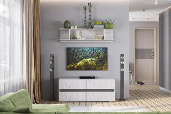 Гостиная BTS Мрия. Комплект 1 — это современное и компактное решение для вашего интерьера, выполненное в актуальном цвете Бетон пайн светлый. Этот комплект включает тумбу под телевизор и открытую навесную полку, что позволяет эффективно использовать пространство, не перегружая комнату мебелью.