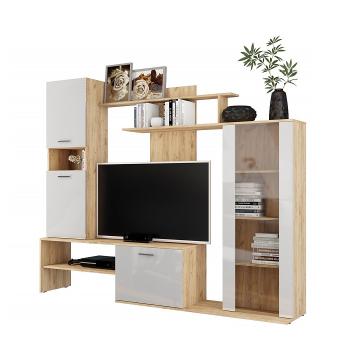 Стенка Данко станет отличным выбором для гостиной. Сочетание светлого дерева с белым глянцем впишется в сканди и современный дизайн комнаты. Наличие полок и ниша под ТВ поможет разместить книги, вещи, аксессуары и телевизор.