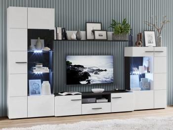 Современная стенка Невада – яркий представитель стиля минимализма, отличается высокой функциональностью и эстетичным внешним видом. Глянцевые белые фасады из МДФ и прозрачные витрины из закаленного стекла создают легкость и воздушность, а эффект блеска и отражения зрительно увеличивает пространство комнаты, добавляет света. Комбинированный контрастный корпус, ручки и задняя стенка черного цвета подчеркивают строгую геометрию линий и форм. Светодиодная комплектуется отдельно