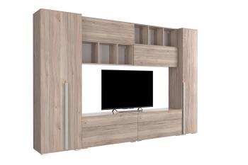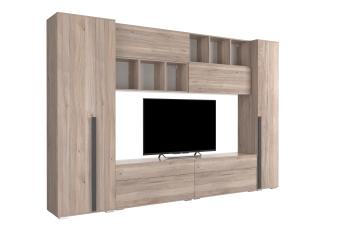 Модульная конструкция позволяет компоновать элементы по своему вкусу, создавая индивидуальное решение для вашего пространства. Широкие секции и полки удобны для хранения книг, декора и бытовых мелочей, а закрытые шкафы помогут поддерживать порядок.