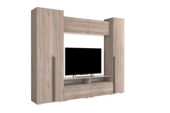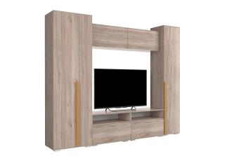 Модульная конструкция позволяет создать индивидуальную композицию для вашей гостиной. Вы можете разместить элементы так, как вам удобно – поставить телевизор на тумбу, использовать шкафы для хранения, а открытые полки для декора.