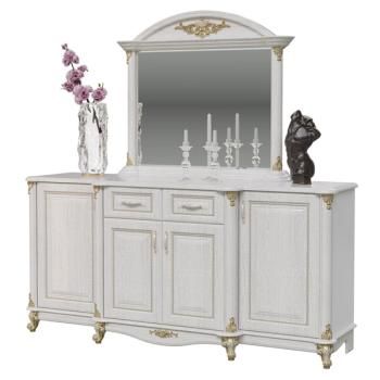 Да Винчи белая Гостиная 07. Артикулы элементов набора – ГД-06 + ГД-07. Размер (ШхГхВ) 206х59х205 см. Аристократический набор, состоящий из комода 4-х дверного и зеркала – классическое оформление парадных апартаментов.