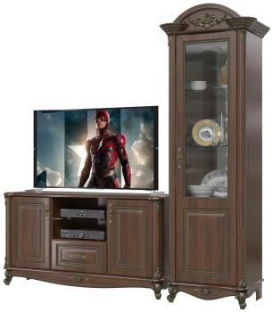 В данной комплектации гостиная состоит из шкафа 1-дверного правого и тумбы ТВ.