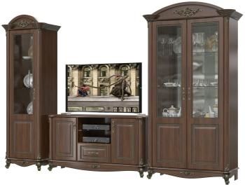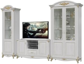 В данной комплектации гостиная состоит из тумбы ТВ и двух шкафов, 2-х дверного и 1-дверного левого.