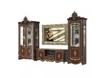 Гостиная Шейх № 9 состоит из: очаровательного шкафа 2-дверного, солидной тумбы TV, резной рамки для TV и изящного шкафа-витрины 1-дверного правого.