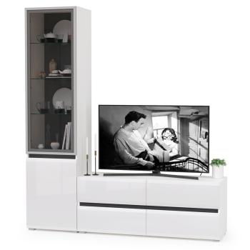 Гостиная Сидней №9 от бренда Mobi – это современное решение для вашей гостиной, сочетающее в себе элегантный дизайн и практичность. Комплект состоит из тумбы под телевизор и шкафа с фасадами из стекла, что делает его идеальным выбором для небольших помещений.