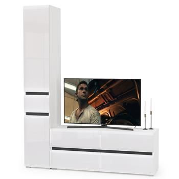 Гостиная Mobi Сидней Комплектация № 15 – это современное решение для вашей гостиной, сочетающее в себе элегантный дизайн и практичность. Комплект выполнен в контрастном бело-черном цвете с глянцевыми фасадами из МДФ, что придает ему стильный и современный вид.