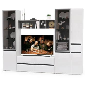 Гостиная Сидней № 26 от бренда Mobi – это современное решение для обустройства просторной гостиной. Комплект выполнен в элегантном бело-черном цвете с глянцевыми фасадами из МДФ, что придает интерьеру стильный и лаконичный вид.