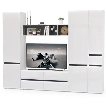Гостиная Сидней № 27 от бренда Mobi – это современное решение для обустройства просторной гостиной. Комплект выполнен в элегантном бело-черном цвете с глянцевыми фасадами из МДФ, что придает ему стильный и лаконичный вид.