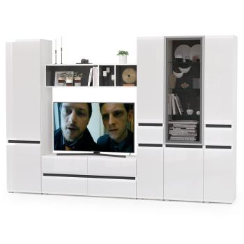 Гостиная Mobi Сидней № 29 – это современное решение для обустройства просторной гостиной. Её лаконичный дизайн в бело-чёрной гамме с глянцевыми фасадами из МДФ придаст интерьеру элегантность и уют.